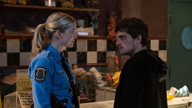 nočný strážnik zavretej pizzerie, vtedy s pomocou policajtky Vanessy (Elizabeth Lail)